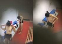男子爬天花板洞中偷窺漂亮妹子換衣服 身材苗條 皮膚白皙
