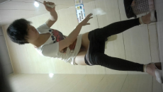3K原始版全景廁拍-京劇臉譜T恤女學生估計懷孕了,一直捂著嘴惡心想吐
